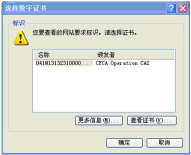 將USBKEY插入電腦后提示選擇相應數字證書: