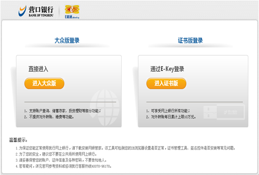 營口銀行個人網上銀行專業(yè)版提供賬戶管理、轉賬匯款、自助繳費、儲蓄理財、投資理財、自助簽約、客戶服務等功能。您可以選擇相應的菜單后點擊需要操作的子菜單進行操作。 |
