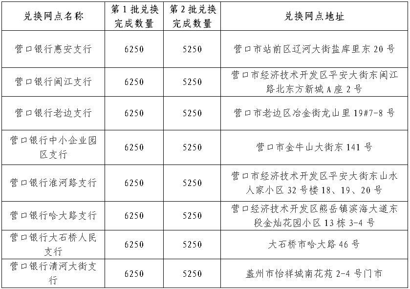 為紀念中國人民抗日戰(zhàn)爭暨世界反法西斯戰(zhàn)爭勝利70周年,按照中國人民銀行工作部署,營口銀行于2015年10月12至13日和10月29至30日分2批次面向公眾辦理“中國人民抗日戰(zhàn)爭暨世界反法西斯戰(zhàn)爭勝利70周年紀念幣”兌換業(yè)務,現(xiàn)將各兌換網(wǎng)點兌換完成情況公告如下: